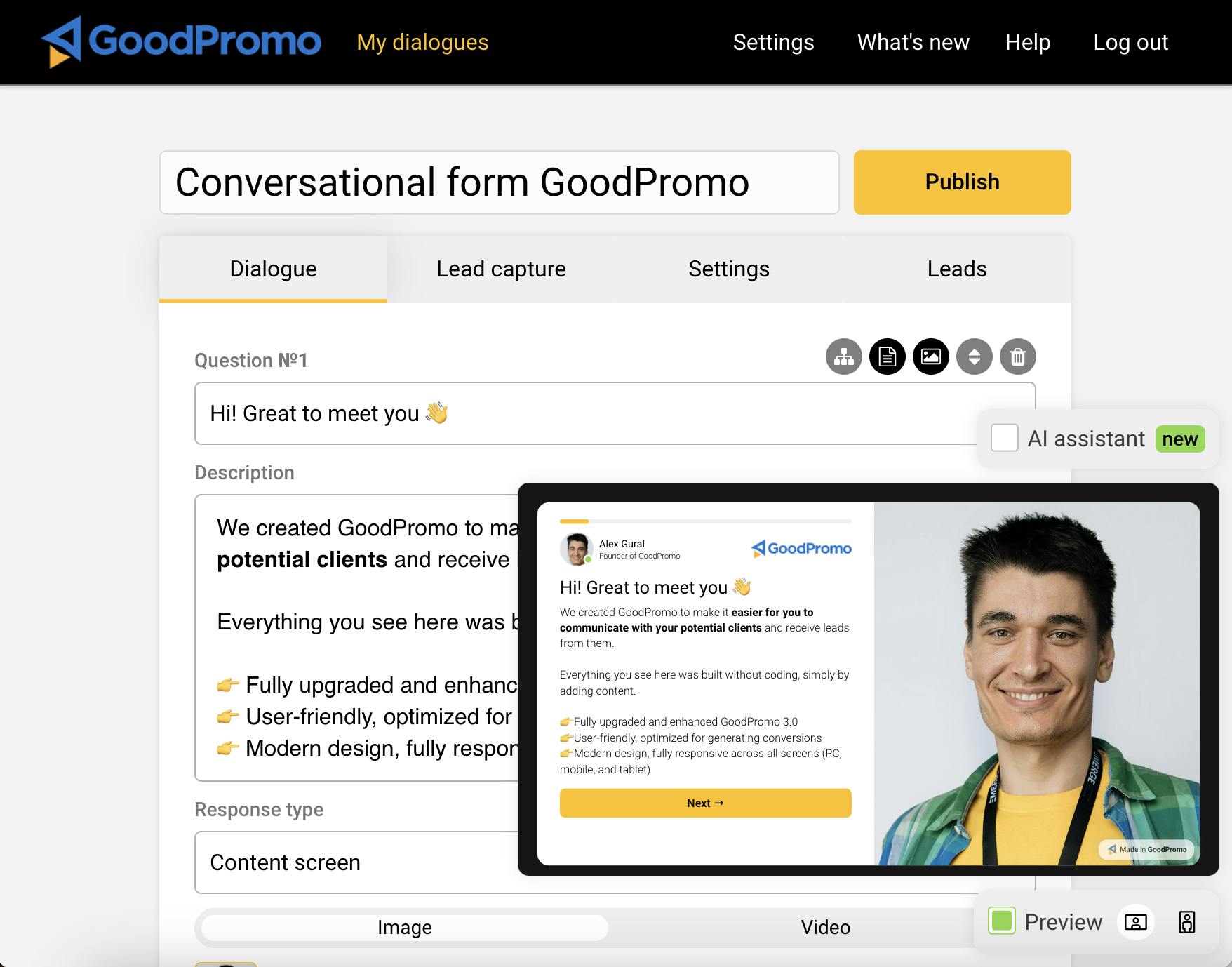 GoodPromo has a user-friendly interface designed for end users – it’s like personally communicating with each visitor